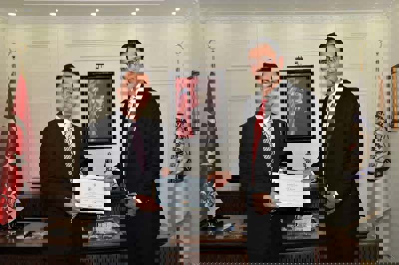 Ziyarette, fakültemizin dış paydaşlarla yürüttüğü iş birliği faaliyetleri hakkında görüş alışverişinde bulunuldu. Fakültemiz heyeti, Sayın Kaymakamımıza desteklerinden dolayı teşekkür belgesi takdim etti.